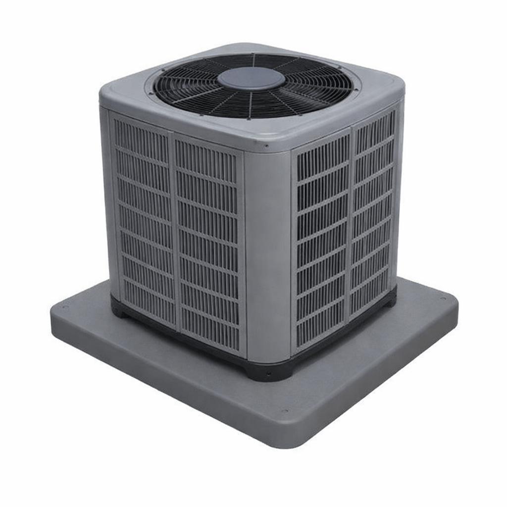 PLASTIC EQUIPMENT PADS designed to support HVAC outdoor units and other outdoor equipment. These pads are a great environmentally friendly alternative to concrete equipment pads, thanks to the recycled content and low raw material usage when formed. The rugged design and optimized rib-pattern provide for excellent support on soil and gravel terrain. Available in both 2″and3″ thickness, depending on local building code requirement